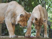 Всю реакцию засняли на видео, которое быстро стало вирусным, а реакция львов – нерешительно исследующих замерзшую поверхность и вздрагивающих, когда она неожиданно прорывается им под лапы – теперь волнует мир.
