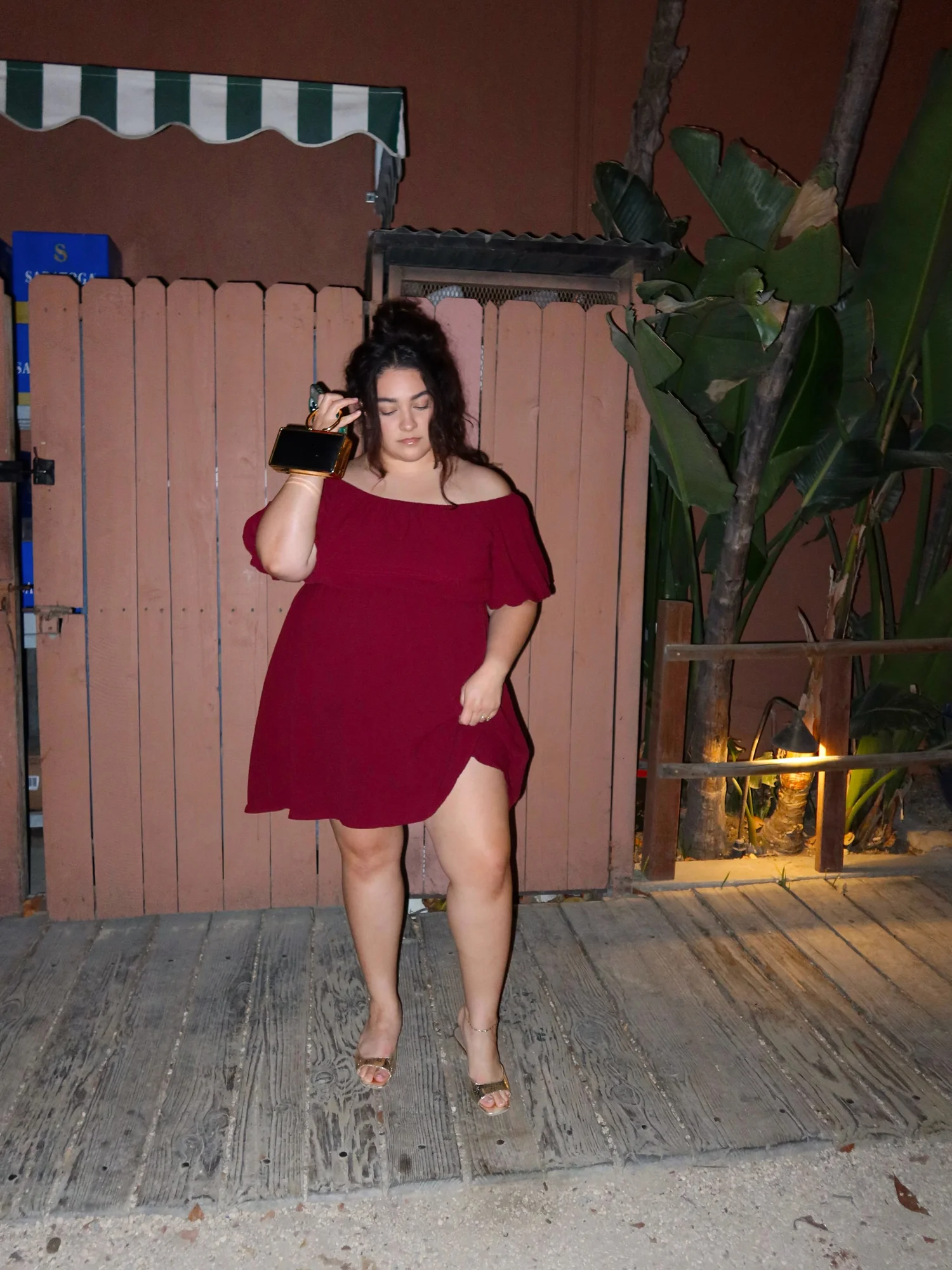 Я надел это на ужин в свой день рождения в начале этого месяца. Я люблю хорошее струящееся платье, подол И плечи. Я соединила его с этими милыми золотыми туфлями на каблуке. Я только что заметил, что никогда не снимаю свой маленький золотой браслет. Моя крошечная сумочка куплена в комиссионном магазине примерно в 2012 году.